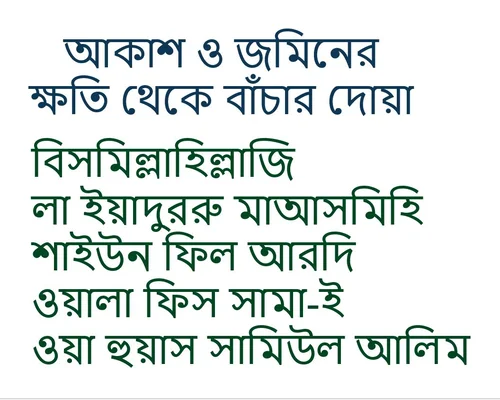 আকাশ ও জমিনের ক্ষতি থেকে বাঁচার দোয়া
